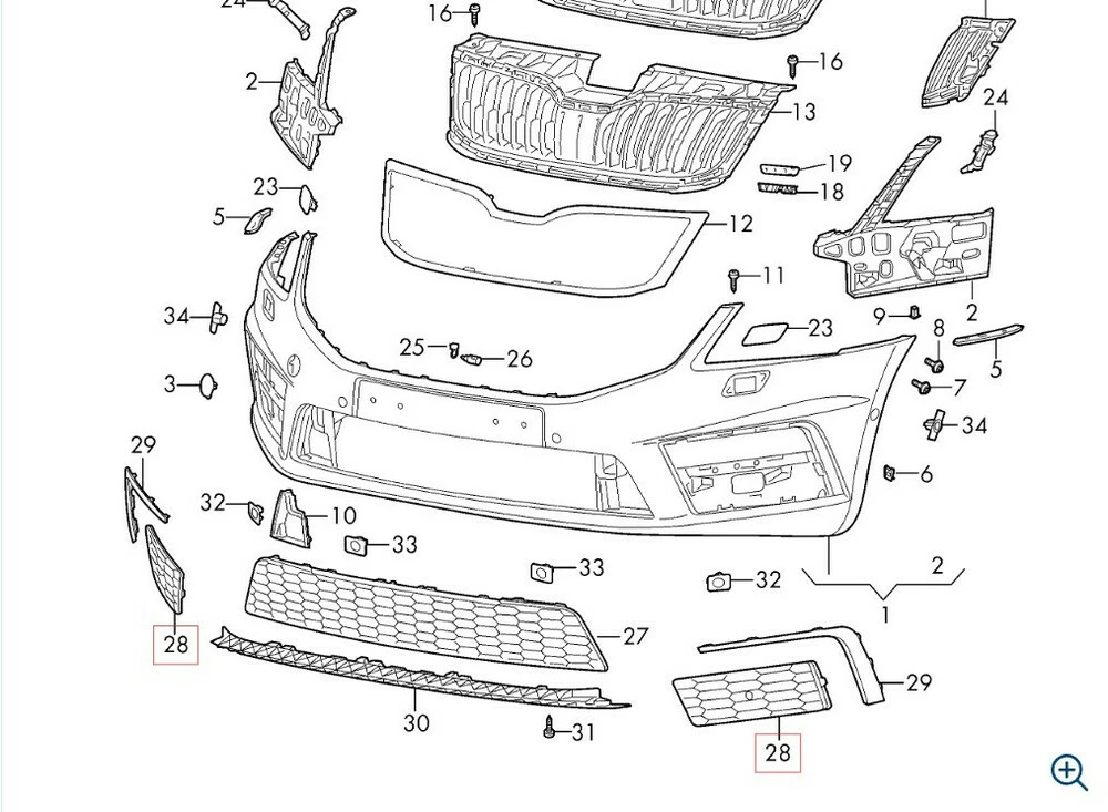 Решетка бампера правая 5E0807682H Skoda Octavia III RS шкода октавия бу