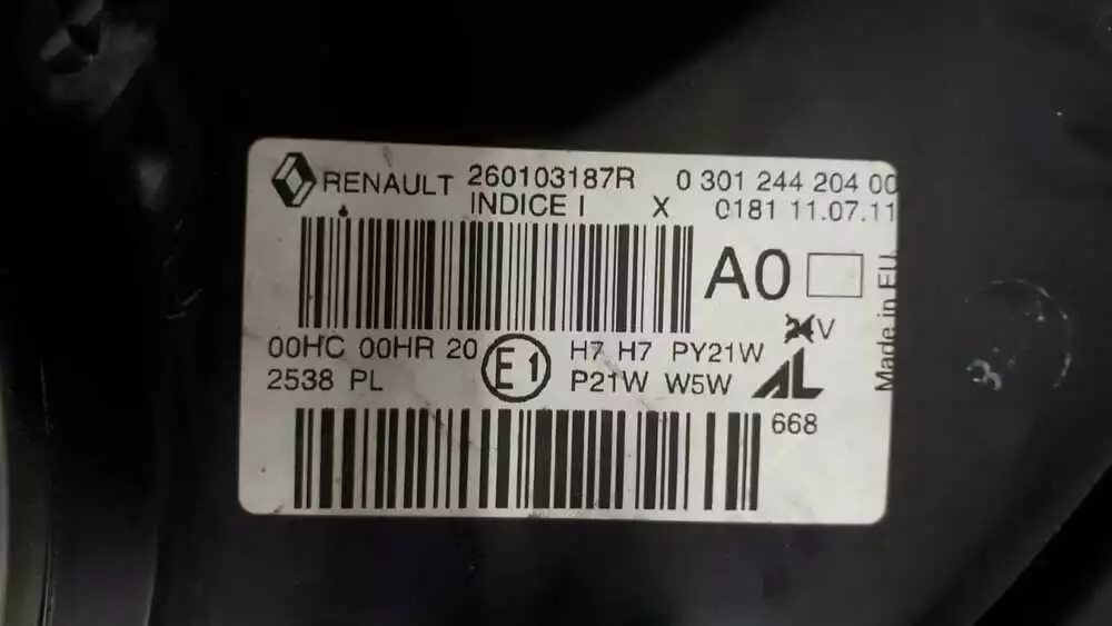 Б/у фара передняя правая 260103187R для Renault Megane III