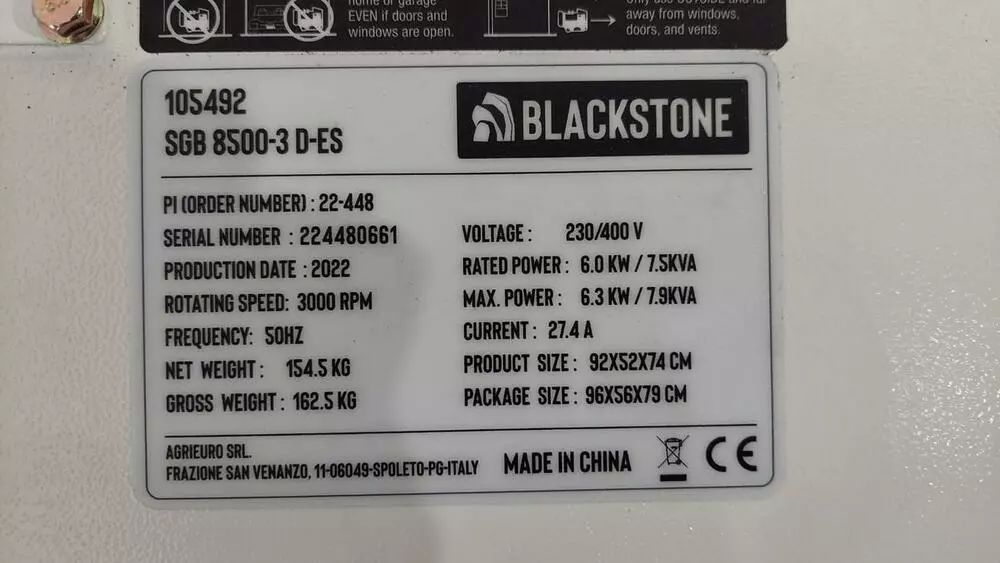 Дизельный генератор Blackstone SGB 8500-3 D-ES 6,3KW 230/400V три фази трьохфазный