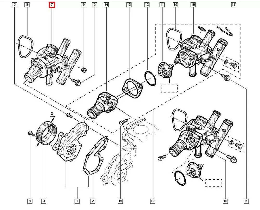 Корпус термостата в сборе, Renault 1.9 D/DTi F8Q/F9Q