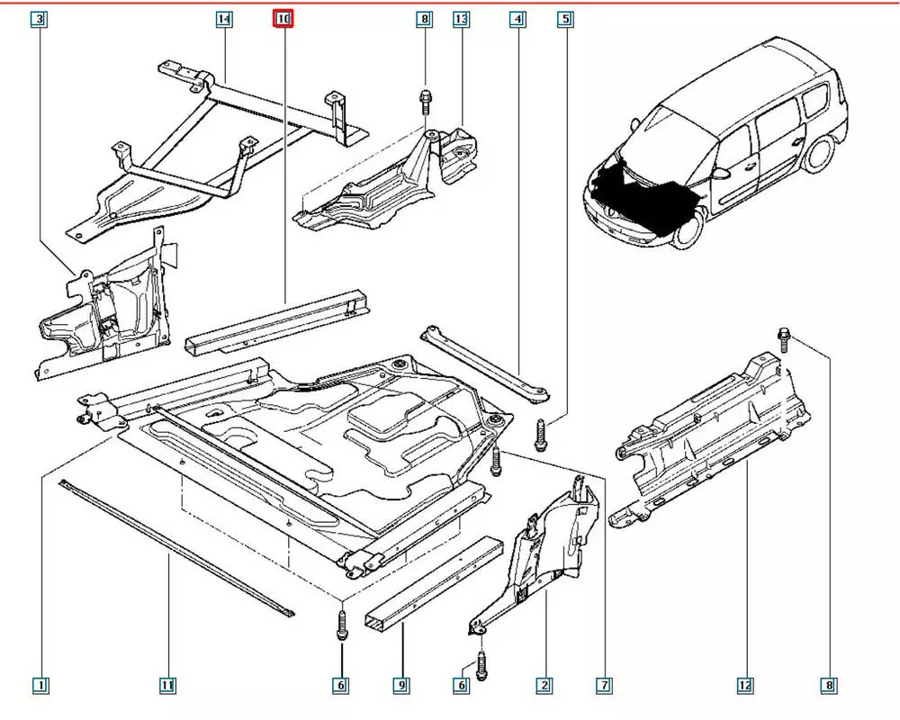 2, Кронштейн крепления защиты двигателя левый рено