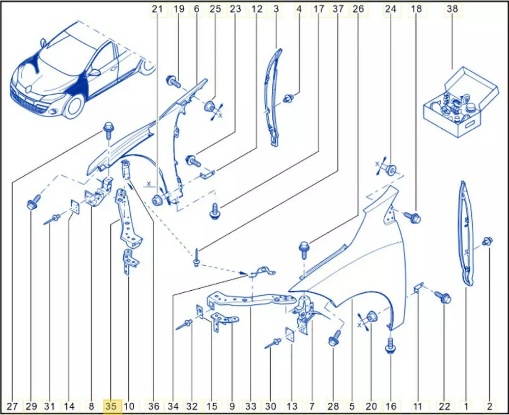 Кронштейн крыла правый/ кронштейн панели/ окуляр Renault