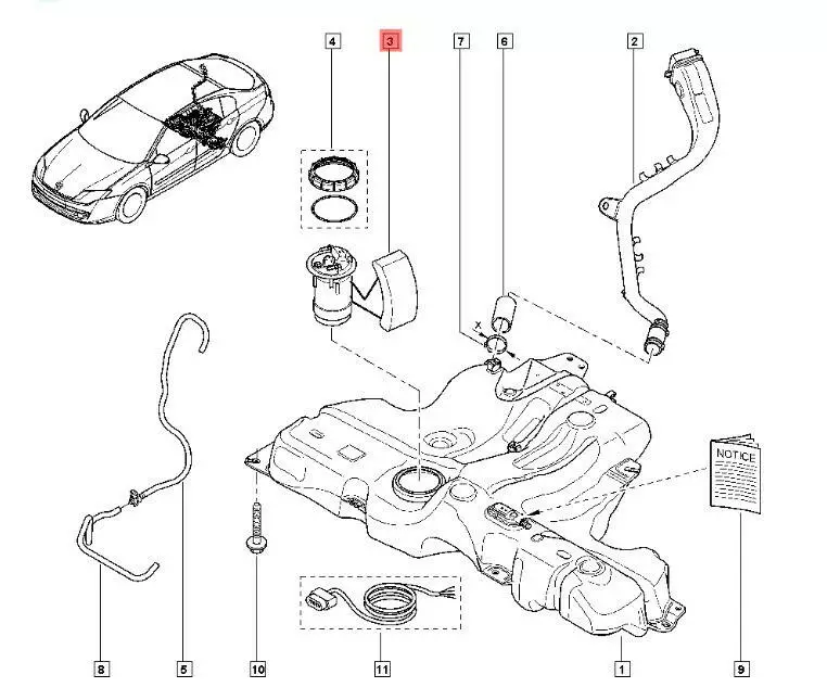 Насос топливный Renault Laguna 3, датчик уровня