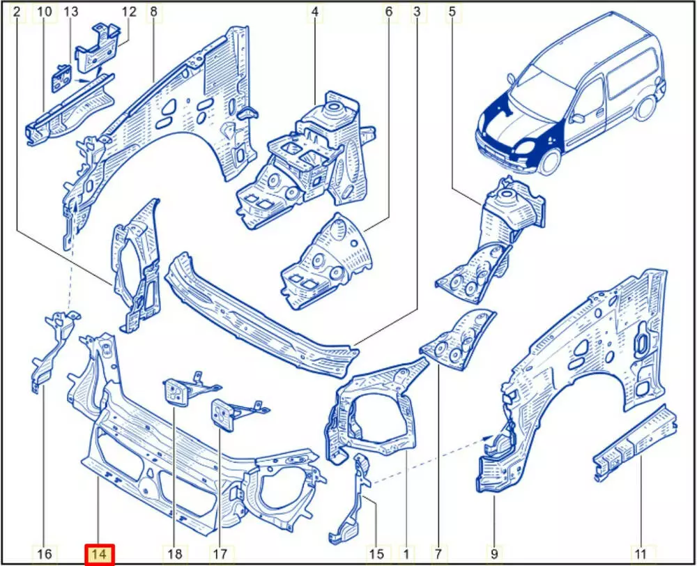 Панель передняя Renault Kangoo, Панель передняя Nissan