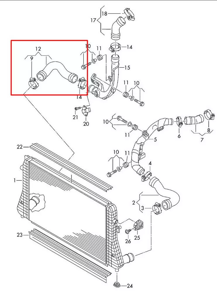 Патрубок интеркулера/ турбины (оригинал VAG)