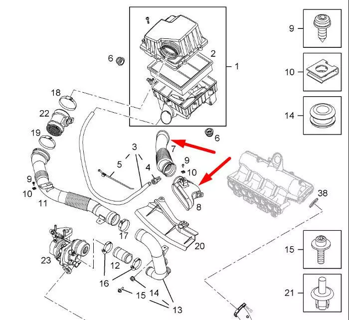 Патрубок воздушного фильтра Opel Corsa D, Патрубок