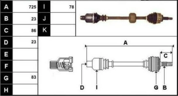 Полуось передняя правая/ привод правый 8200236099, 23 шлица Nissan Kubistar Renault Clio 2 Kangoo Thalia бу