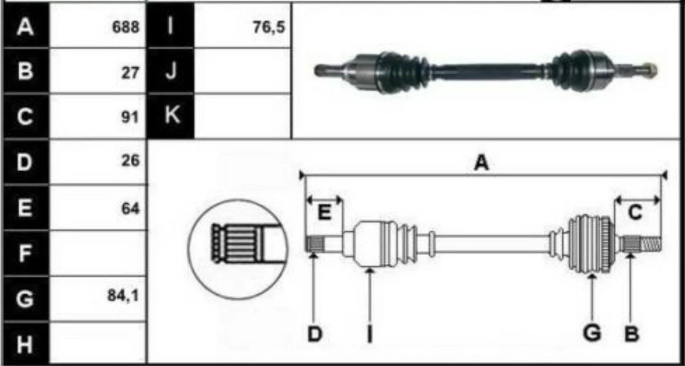 Привод передний левый/ полуось левая 391016312R, 27/26