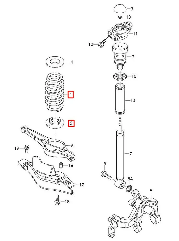 Купить Пружину заднюю, 7N0511115A