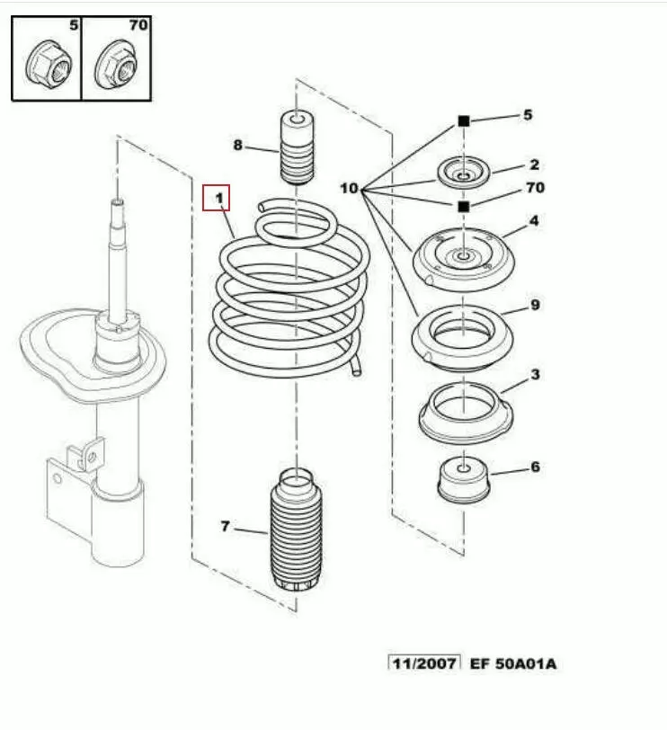 Пружина передняя Peugeot 307, Пружина передняя Пежо 307