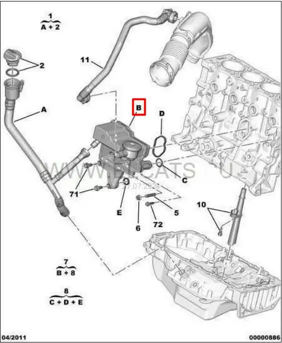 Сапун/ блок вентиляции картерных газов 1180T6, 1180S0 Peugeot/Citroen 2.0 HDi DW10CTED4