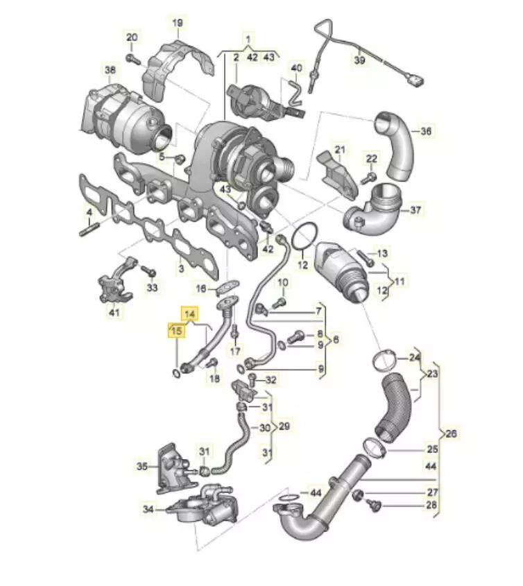 масла турбины Audi, Магистраль слива масла турбины Seat, Магистраль