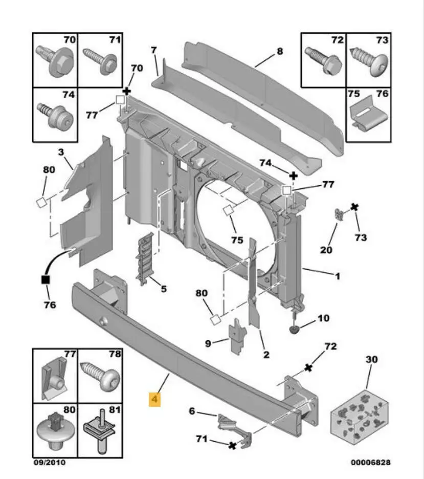 Усилитель переднего бампера/ траверса 7106C5, 7414HY, 9651794280 Citroen C4 (04-11)