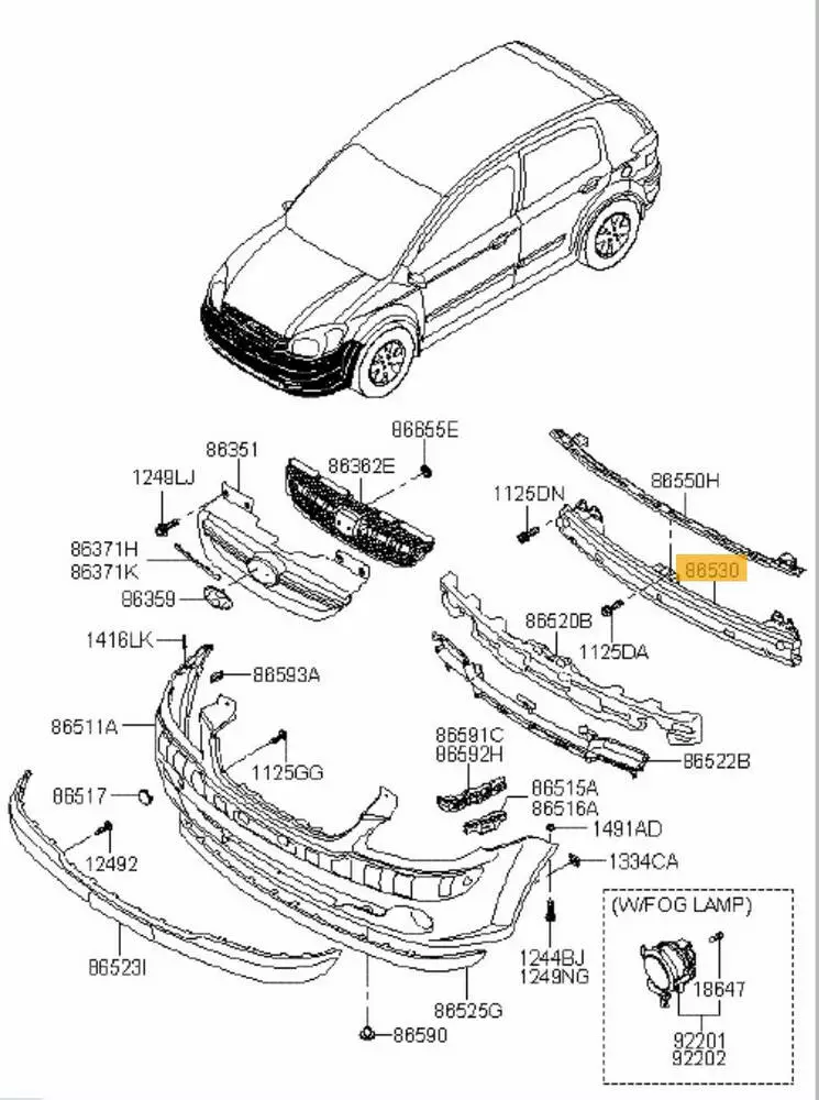 Купить Усилитель переднего бампера, 865301C300