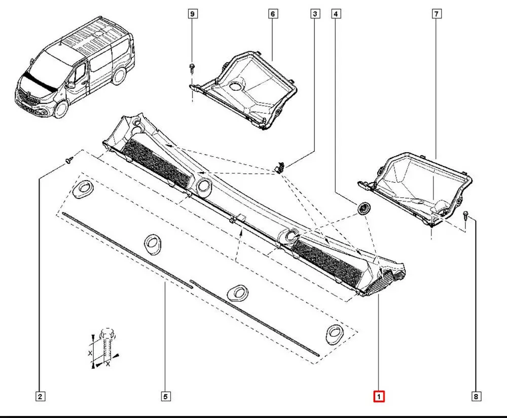Жабо, пластик под лобовое стекло 668114420R, 668110213R Fiat Talento Nissan NV300 Opel Vivaro Renault Trafic 3