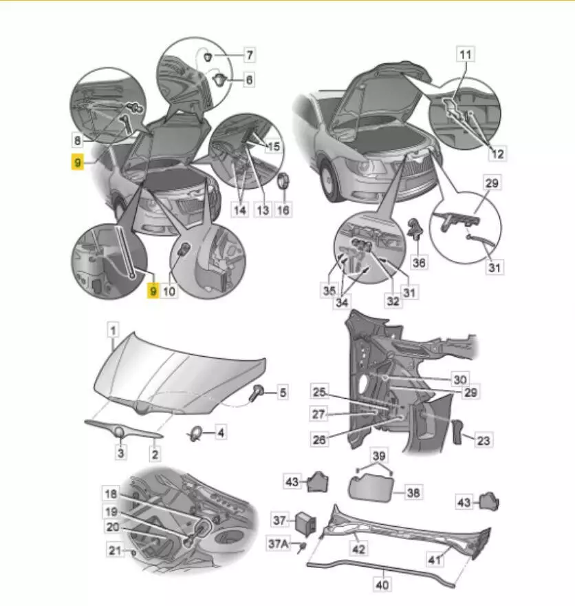 Амортизатор капота (оригинал) для Skoda Superb II (08-15);