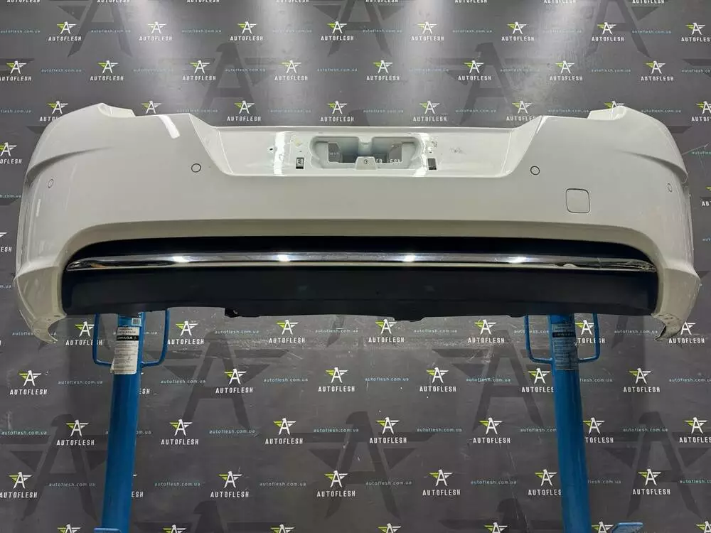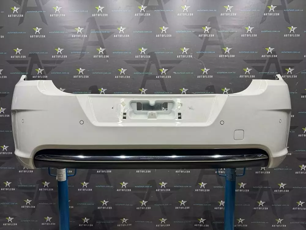Бампер задний в сборе (парктроник/хром), код краски: EWP - BANQUISE
