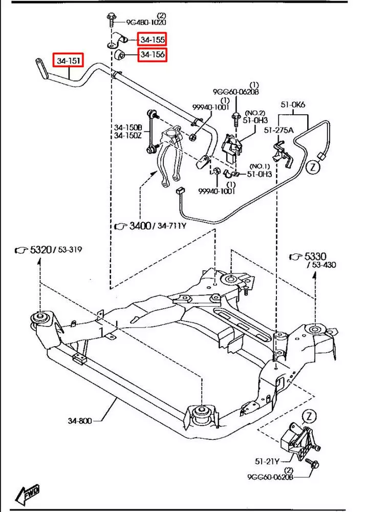 Номера OE: GJ6A34151B, GJ6A34156, GJ6A34155