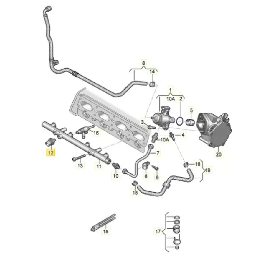Датчик давления топлива в рампе (оригинал Bosch); VAG 2.0 TFSI Gen3