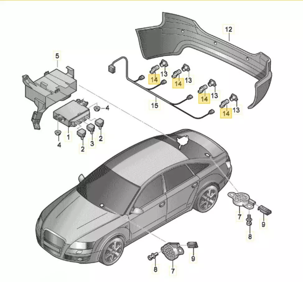 Датчик парктроника задний Volkswagen, Датчик парктроника задний Audi, Датчик парктроника задний Seat, Датчик парктроника задний Skoda, Датчик парктроника задний Porsche,