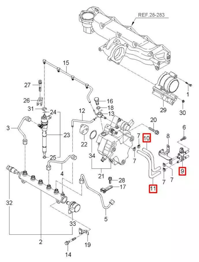 Датчик температуры топлива/ трубки топливные/ штуцер 3146027410, 3146127480 KIA Hyundai 2.0 CRDi