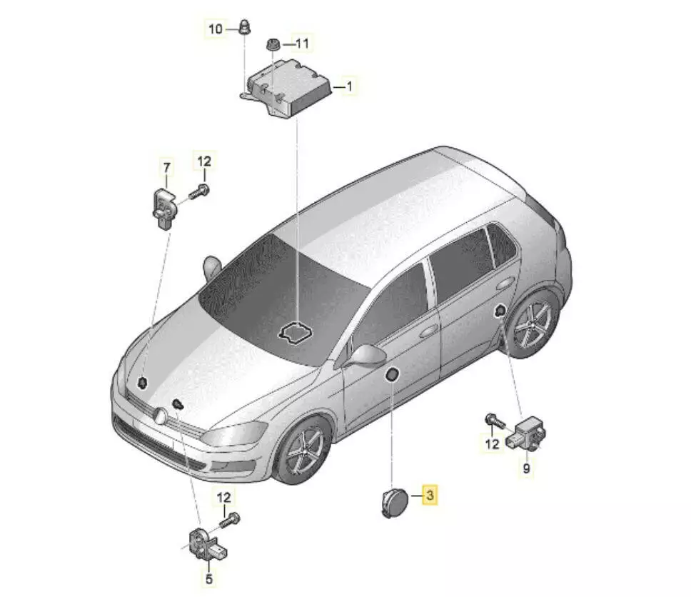 Датчик удара Airbag передней двери Volkswagen, Датчик удара Airbag передней двери Audi, Датчик удара Airbag передней двери Seat, Датчик удара Airbag передней двери Skoda,