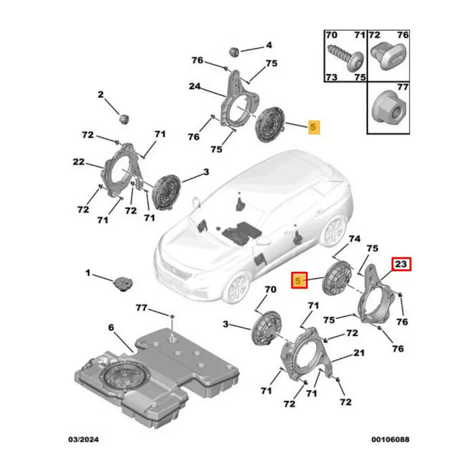 Динамик задней левой двери Peugeot 3008, Динамик задней левой двери Peugeot 5008, Динамик задней левой двери Citroen C5 Aircross, Динамик задней левой двери Opel Grandland X