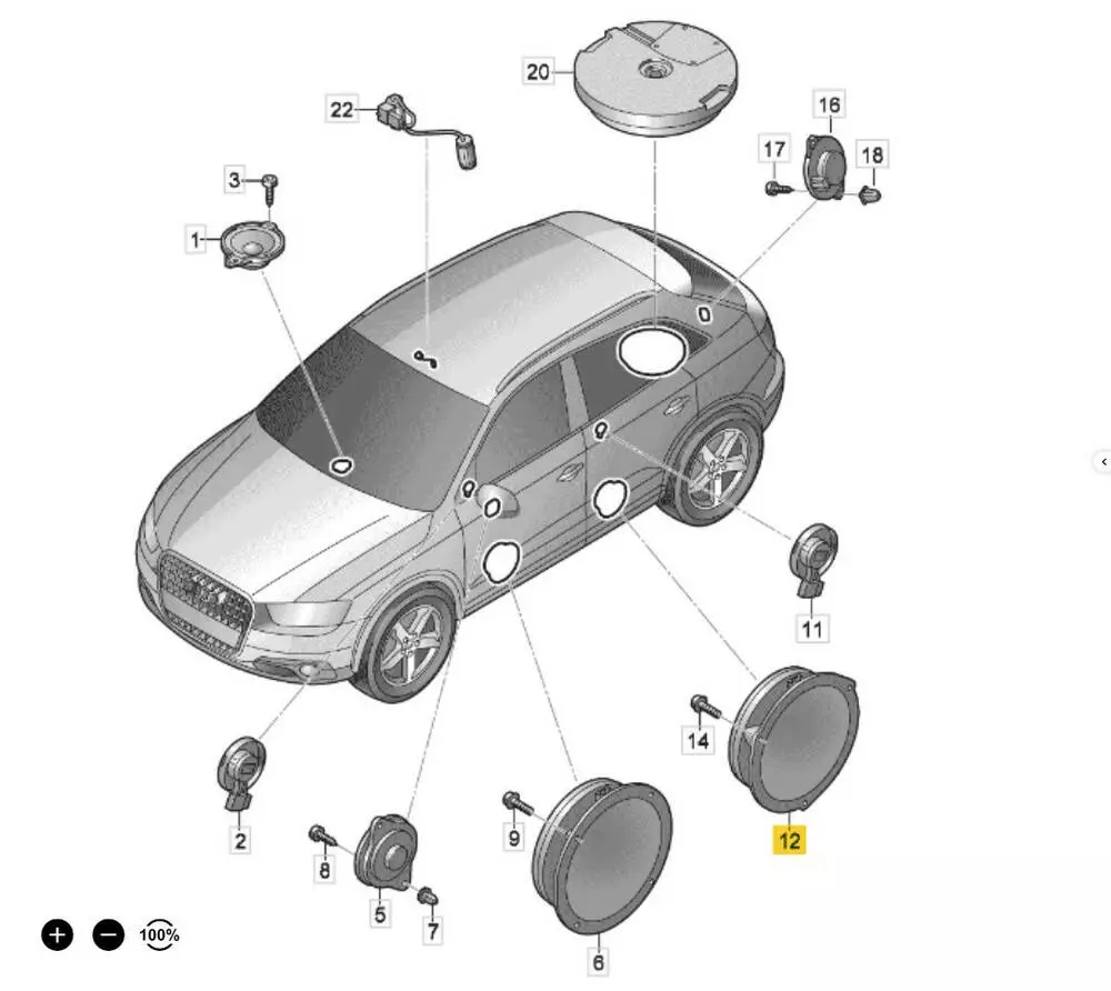 Динамик задней правой двери Audi A4, Динамик задней правой двери Audi A5, Динамик задней правой двери Audi Q3, Динамик задней правой двери Audi Q5, Динамик задней правой двери Ауди