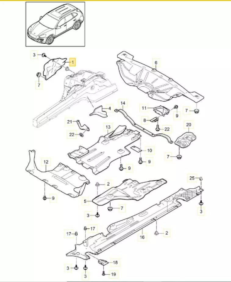 Экран теплоизоляционный Porsche Cayenne, Экран теплоизоляционный Порше Кайен,