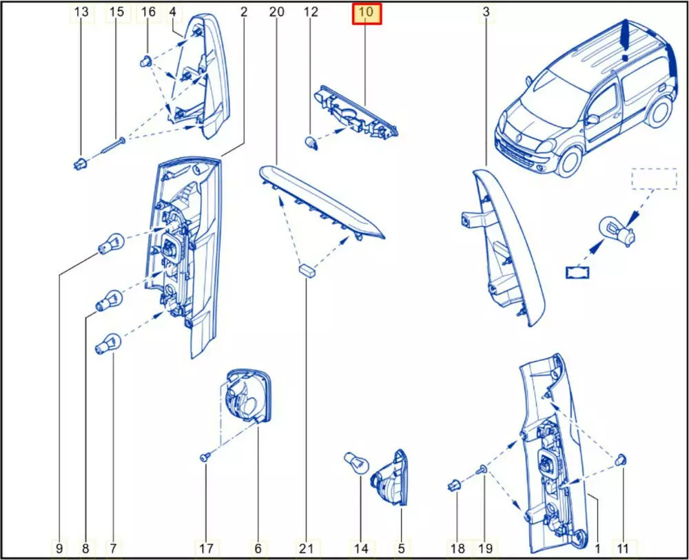 Фонарь задней левой двери (дополнительный). Renault Kangoo II,
