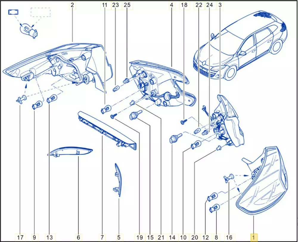 Фонарь задний левый наружный (оригинал Renault). Megane III