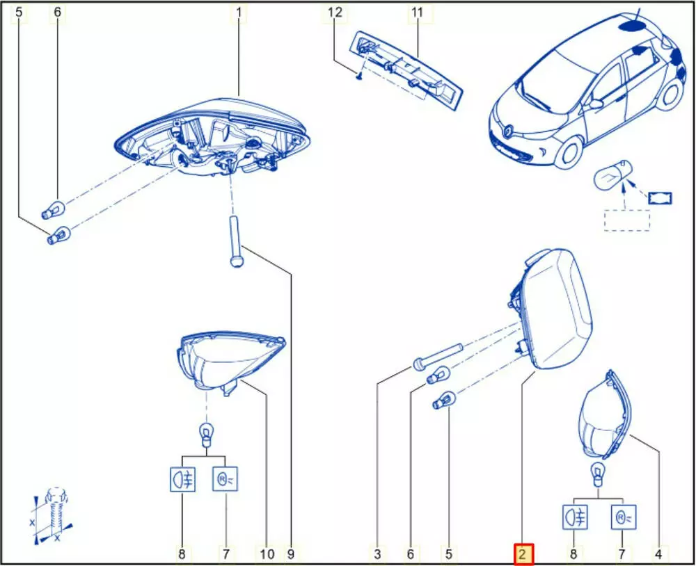 Фонарь задний левый в сборе (оригинал); Renault ZOE (12-19)