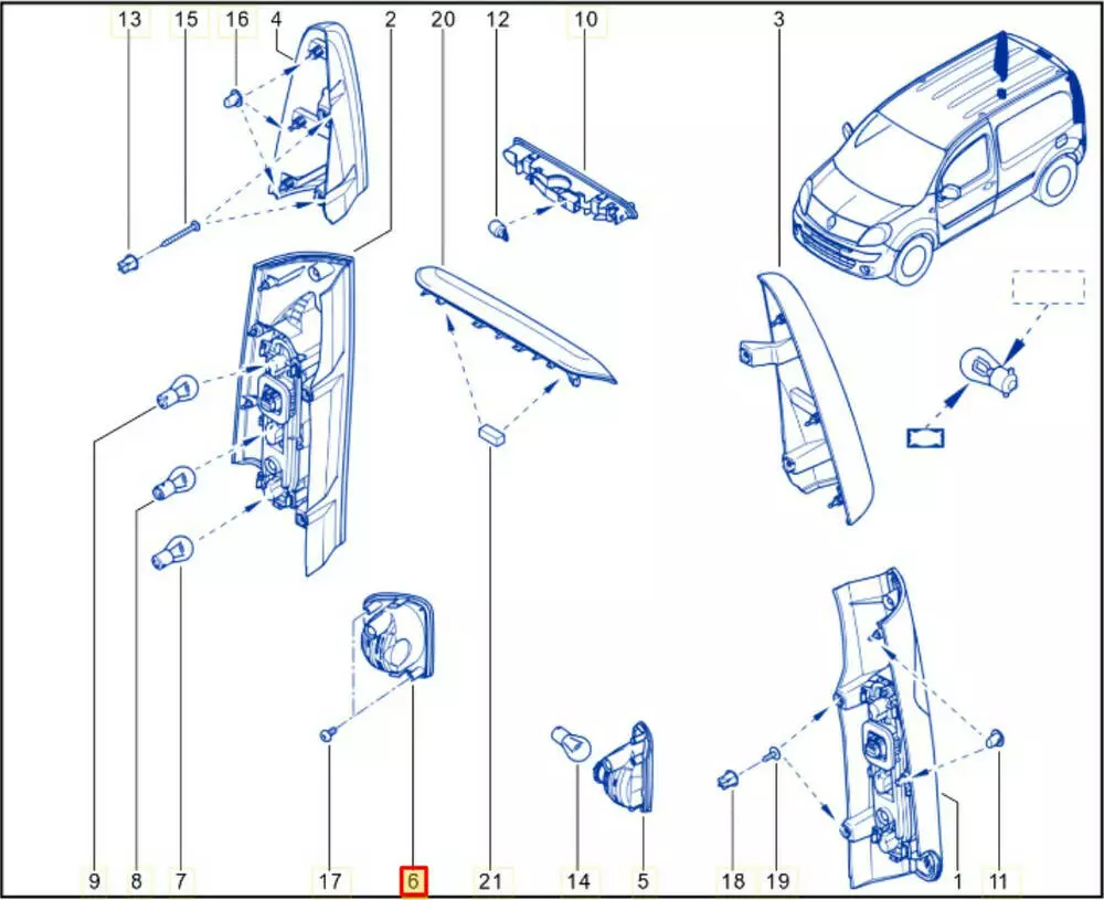 Фонарь задний правый 8200419908 Renault Kangoo II (08-21)