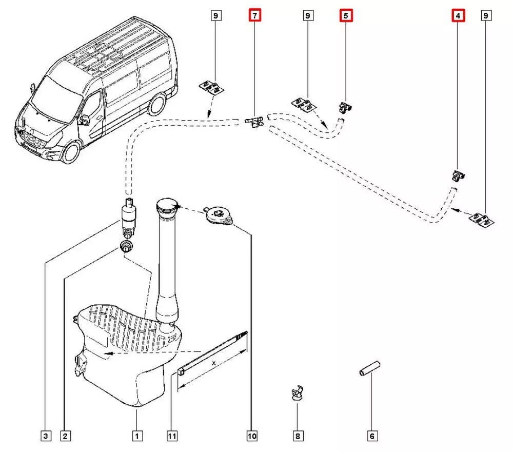 Форсунки стеклоочистителя Nissan NV400, Форсунки стеклоочистителя Opel Movano B, Форсунки стеклоочистителя Renault Master 3