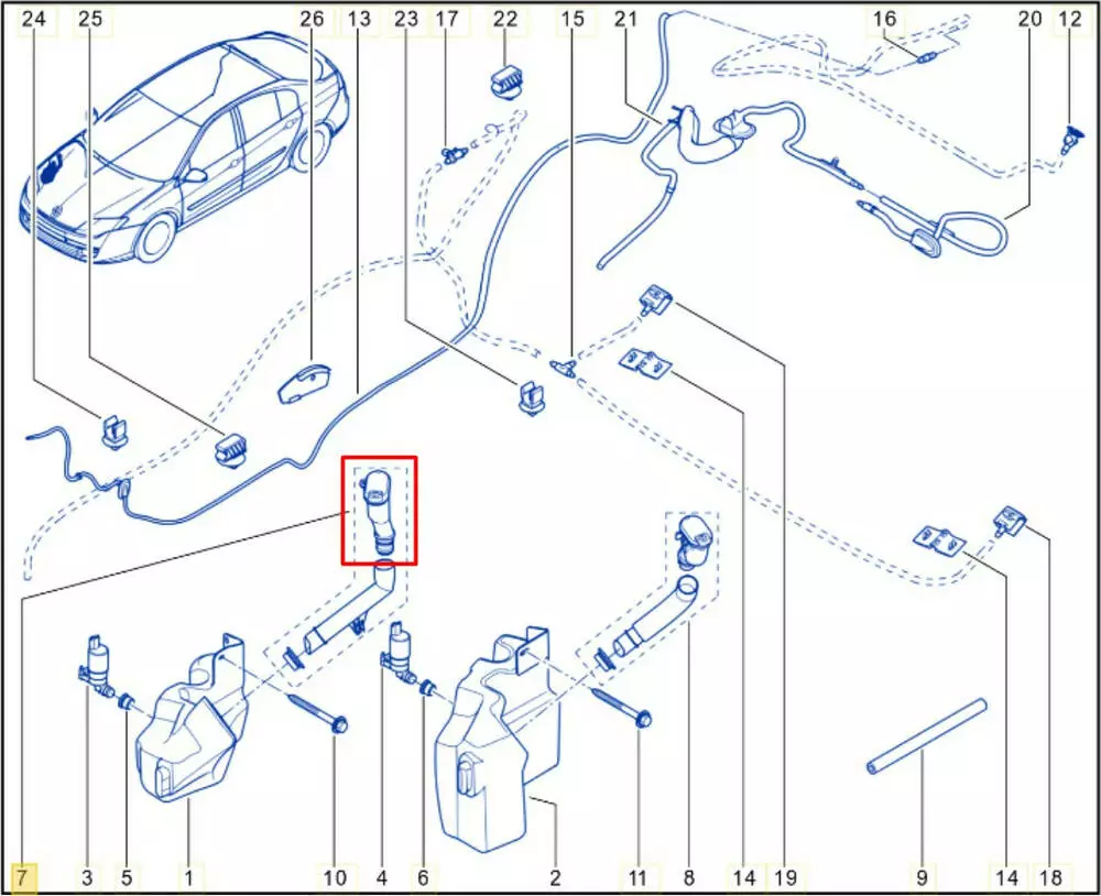 Горловина бачка омывателя Renault Laguna 3, Горловина бачка омывателя Рено Лагуна,