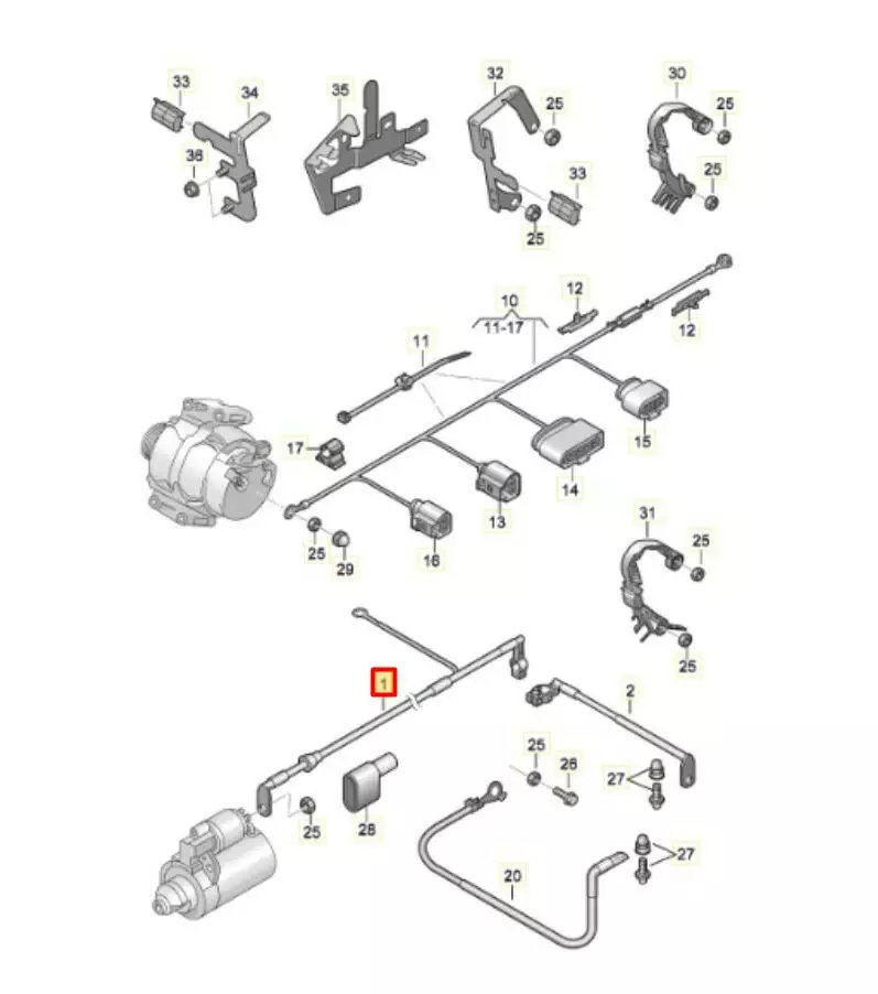 Кабель стартера Volkswagen, Кабель стартера Audi, Кабель стартера Seat, Кабель стартера Skoda