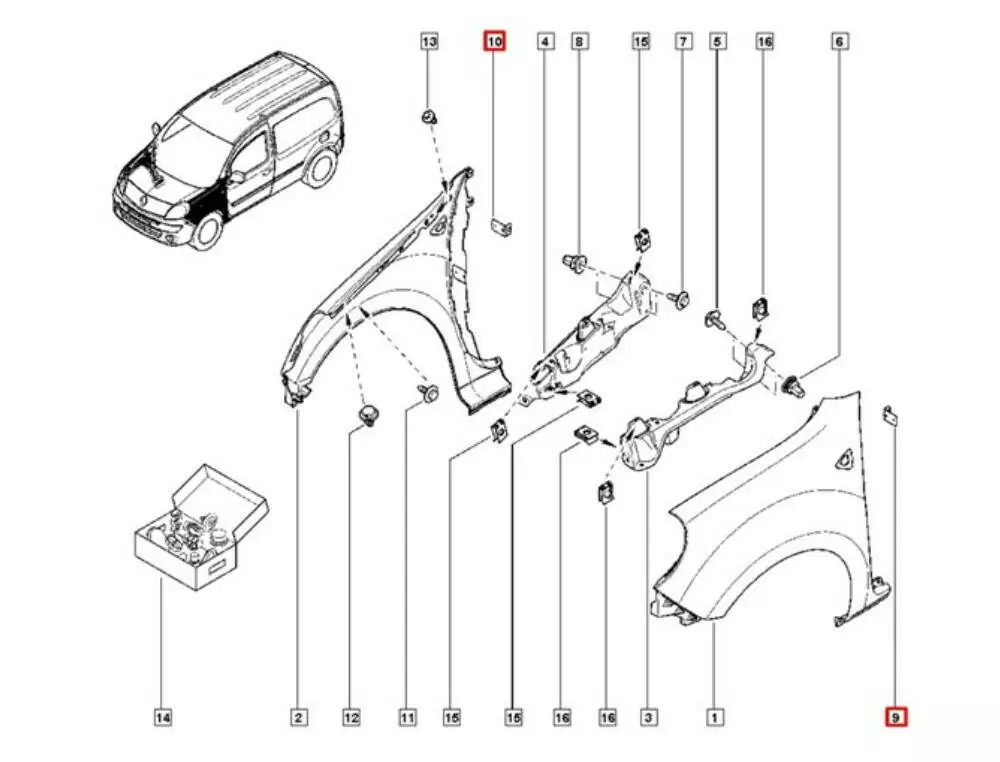 Крепление крыла Mercedes Citan, Крепление крыла Renault Kangoo