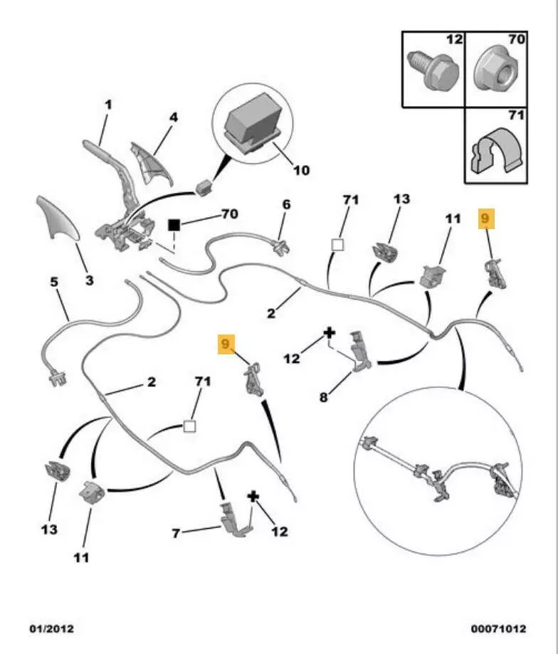 Крепление тормозных тросов ручника Peugeot Partner, Крепление тормозных тросов ручника Citroen Berlingo,