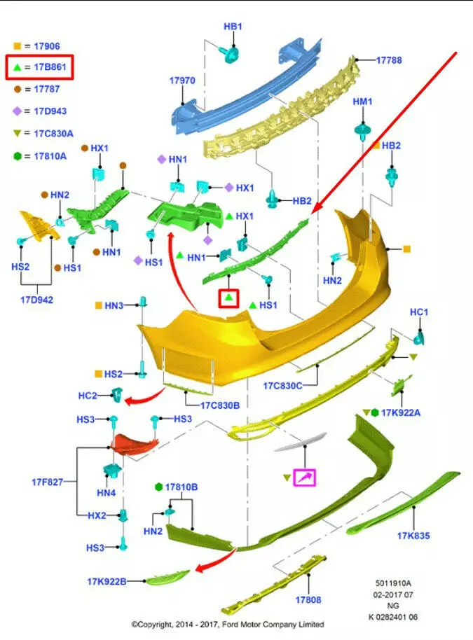 Крепление заднего бампера Ford Mondeo 5, направляющая заднего бампера Ford Mondeo 5,