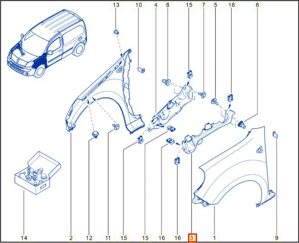 Кронштейн крыла левый/ крепление (оригинал); Renault Kangoo II