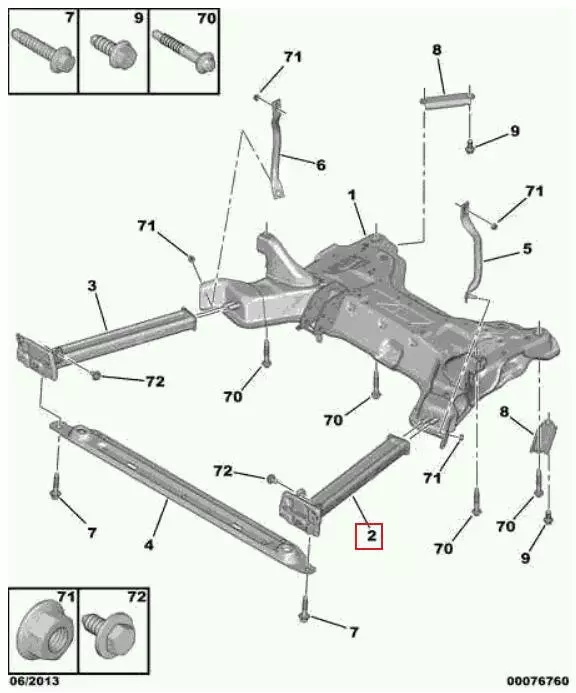 Кронштейн передней балки левый Citroen C4 Picasso, Усилитель передний Citroen C4 Picasso