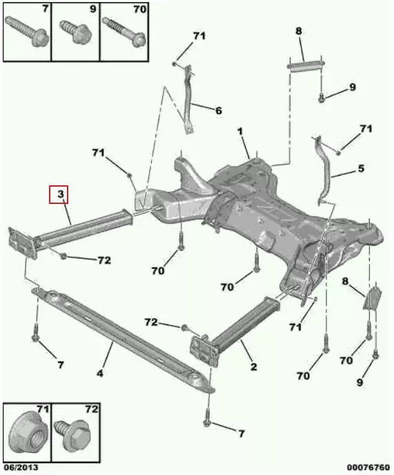 Кронштейн передней балки правый Citroen C4 Picasso, Усилитель передний Citroen C4 Picasso