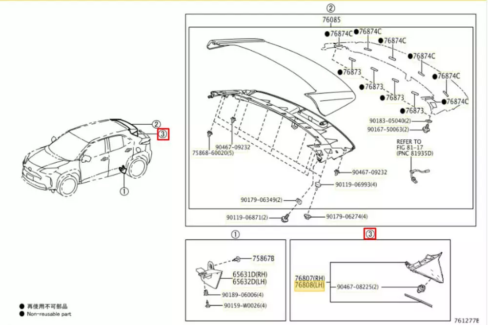 Накладка спойлера крышки багажника левая 768080D010, 76808-0D010 Toyota Yaris Cross (21-25)