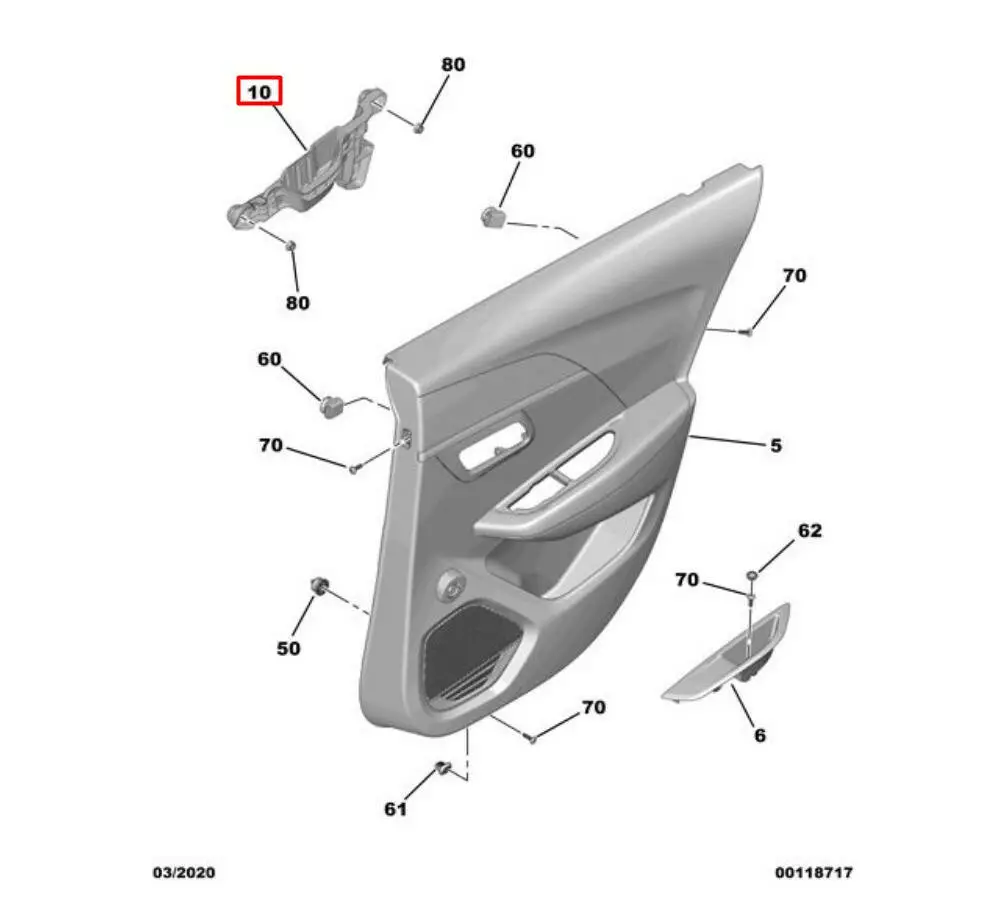 Опора ручки задней правой двери/ кронштейн 9823213480 Peugeot 208 II P21E (19-25)