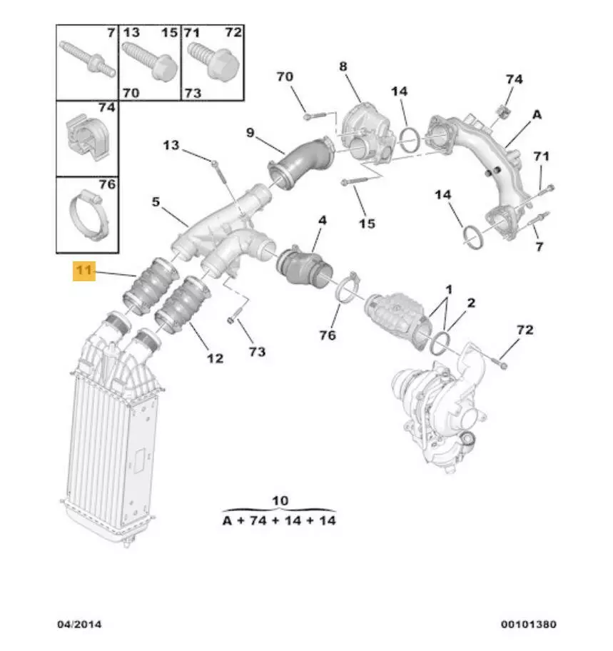 Патрубок интеркулера Peugeot, Патрубок интеркулера Citroen, Патрубок интеркулера Пежо, Патрубок интеркулера Ситроен,
