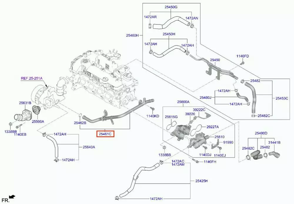 Патрубок охлаждения 2545008HA0, 254623F300 KIA Niro II/ Hyundai Kona II (21-26) Hybrid 1.6 GDi
