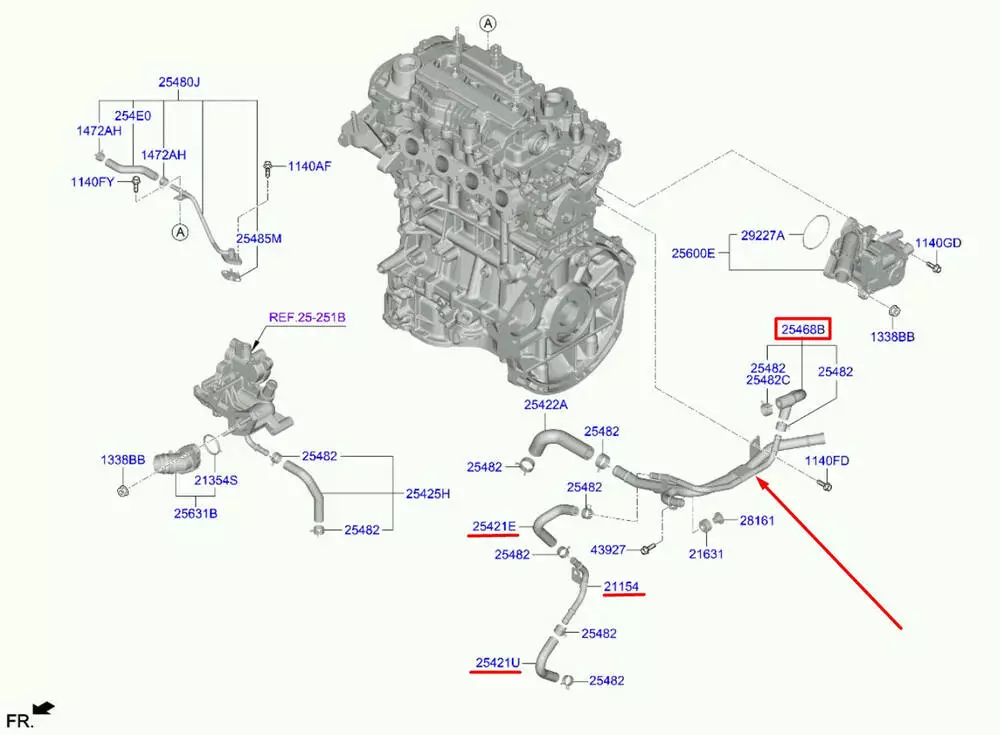 Патрубок охлаждения/ система патрубков тосола 2546808200, 2546808200 KIA - Hyundai 1.5 T-GDi G4LH