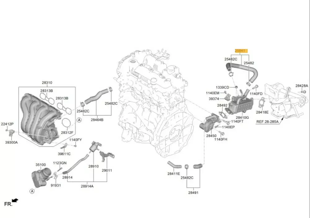 Патрубок тосола радиатора EGR 2842208HA0, 2548224006 KIA Niro II/ Hyundai Kona II