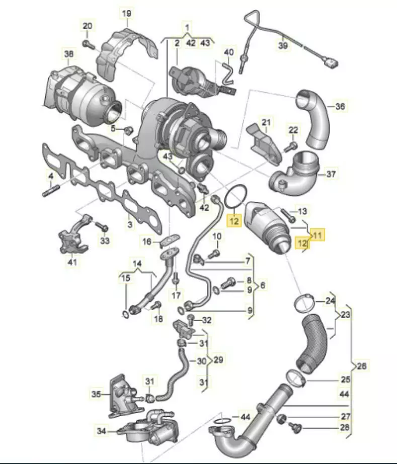 Патрубок турбины Audi, Патрубок турбины Seat, Патрубок турбины Skoda, Патрубок турбины Volkswagen,