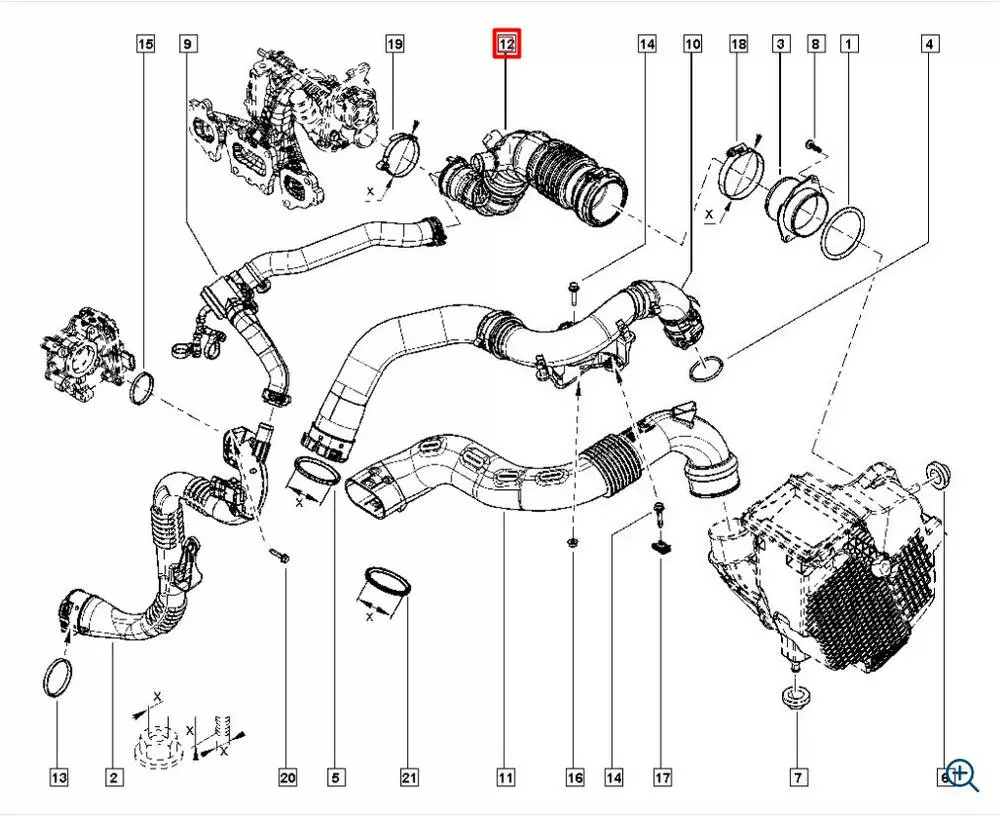 Патрубок воздушного фильтра/ патрубок интеркулера 165762992R,